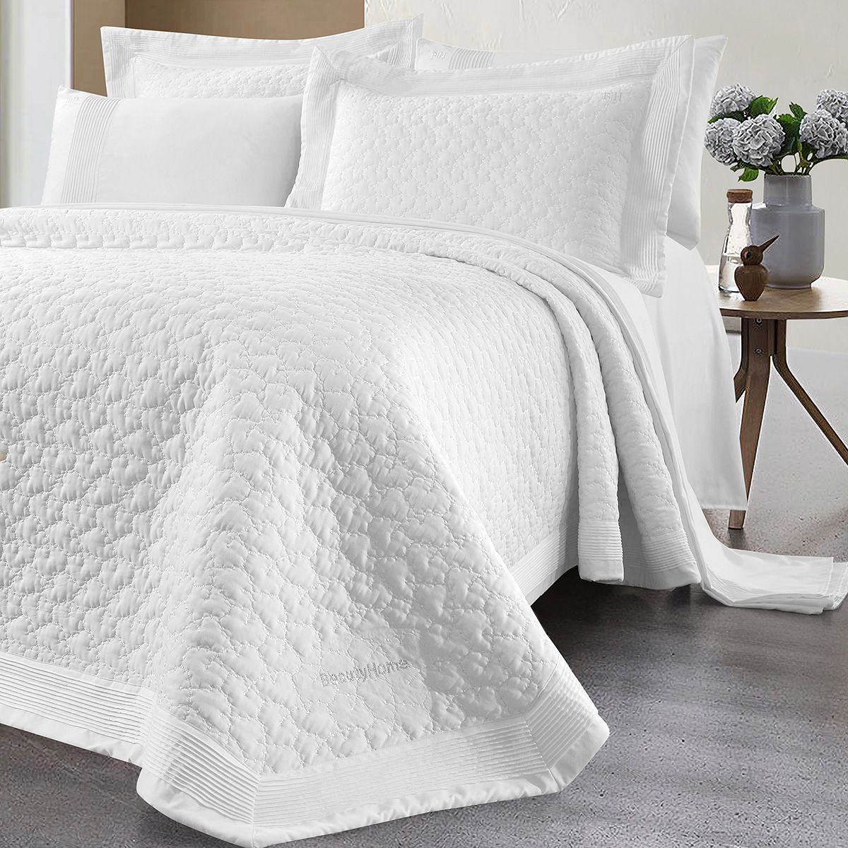 Beauty Home Νυφικό σετ 7 τμχ Thalia Art 12504 230×250 Λευκό – Η Beauty Home θέλει να βρίσκεται δίπλα σας σε κάθε στιγμή της ζωής σας. Σας παρουσιάζουμε την νέα συλλογή μας σε νυφικά σετ ώστε να δημιουργήσετε ένα εντυπωσιακό νυφικό κρεβάτι που θα αποτελέσει το κέντρο της προσοχής στο υπνοδωμάτιο σας την ομορφότερη μέρα της ζωής σας. Το σετ νυφικού κρεβατιού προσφέρει όχι μόνο λειτουργικότητα αλλά αποτελεί την ιδανική επιλογή για να δώσετε μια νότα πολυτέλειας, κομψότητας και ρομαντισμού στον χώρο σας. Το νυφικό σετ 7 τεμαχίων περιλαμβάνει : 1 τεμάχιο κουβερλί σε διάσταση 230×250 το οποίο θα αγκαλιάσει το κρεβάτι σας με μια αίσθηση άνεσης και ζεστασιάς , το σετ συμπληρώνει 1 τεμάχιο πανωσέντονο σε διάσταση 240×260, 1 τεμάχιο κατωσέντονο σε διάσταση 240×260 και 4 τεμάχια μαξιλαροθήκες σε διάσταση 50×70 είναι σχεδιασμένα για να εφαρμόζουν τέλεια προσφέρoντας μια αίσθηση απαλότητας και άνεσης κατά τη διάρκεια του ύπνου. Είναι κατασκευασμένο από microfiber κεντημένο επιλεγμένο με προσοχή για την υψηλή ποιότητα και την αντοχή του, ενώ η υφή του είναι μαλακή και απαλή στην αφή. Είτε πρόκειται για μια κλασική επιλογή είτε για κάτι πιο μοντέρνο και δυναμικό, αυτό το σετ θα σας χαρίσει μια αίσθηση πολυτέλειας και άνεσης κάθε φορά που θα το χρησιμοποιείτε. Προσθέστε οποιαδήποτε τελευταία διακοσμητικά στοιχεία, όπως κουβέρτες ή ρόμπες λουτρού, που θα συμπληρώσουν το στυλ και την αισθητική του νυφικού κρεβατιού σας.