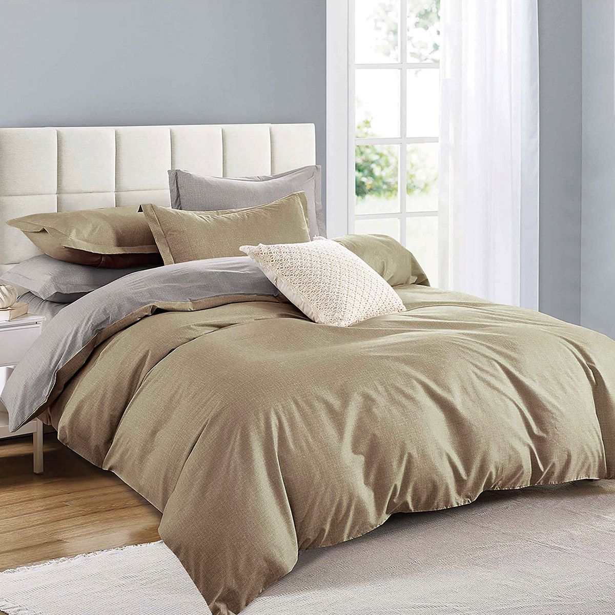 Beauty Home Πάπλωμα διπλής όψης μονό Art 12303 170×230 Λαδί, Γκρι – Η νέα σειρά collection of senses ήρθε για να ξυπνήσει της αισθήσεις σας. Είναι διπλής όψης πάπλωμα σε πέντε υπέροχους διαφορετικούς συνδυασμούς χρωμάτων για να διαλέξετε αυτό που σας ταιριάζει. Κατασκευασμένο από εξαιρετικής ποιότητας ύφασμα 100% microsateen cotton touch και γέμιση βάρους 300gsm που το καθιστά ανθεκτικό στη χρήση και στον χρόνο. Είναι πολύ ελαφρύ απαλό και ζεστό. Αποτελεί ιδανική επιλογή για σκέπασμα τους χειμερινούς μήνες καθώς χαρίζει έναν άνετο ύπνο !