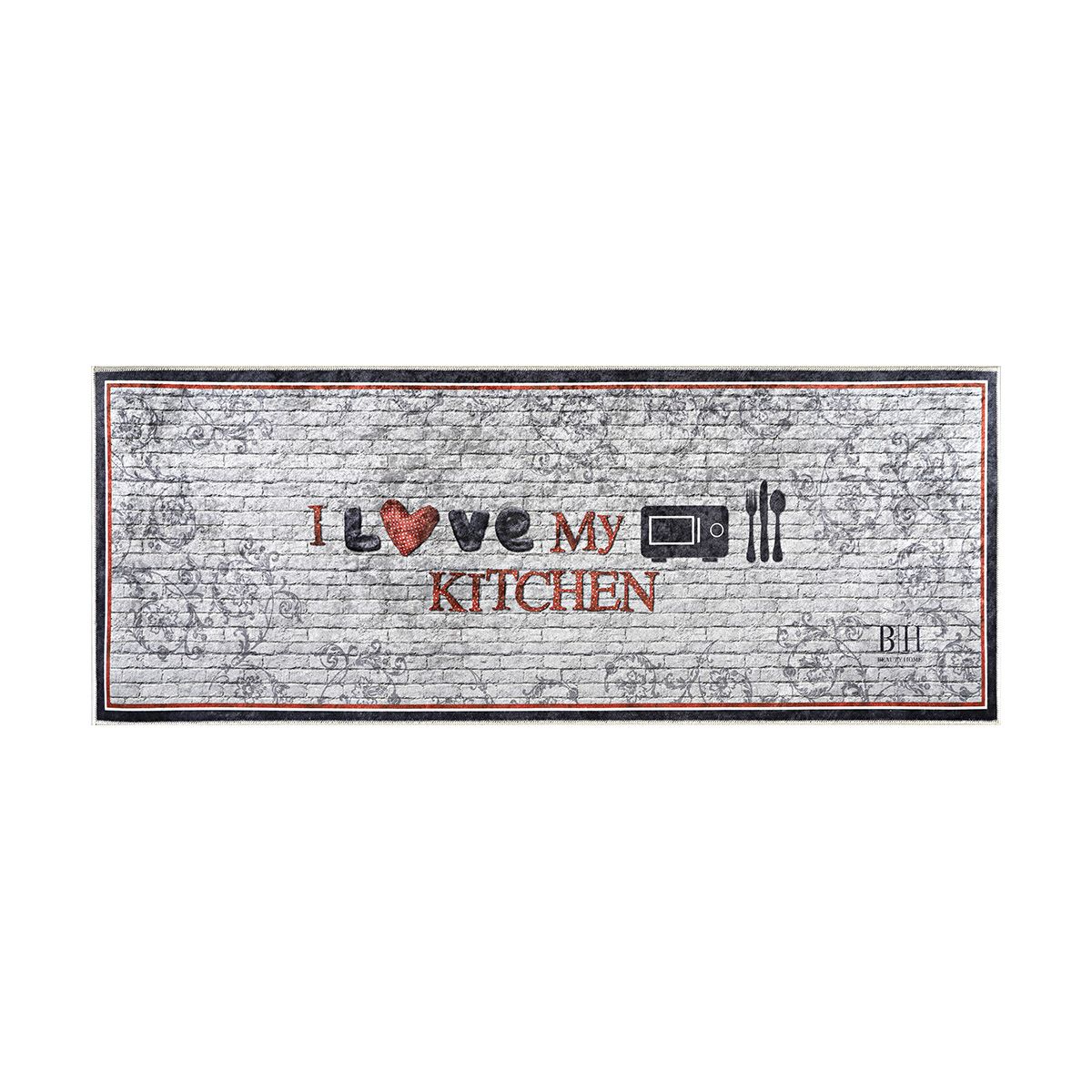 Beauty Home Πατάκι κουζίνας 9015 60×160 Γκρι,Κόκκινο