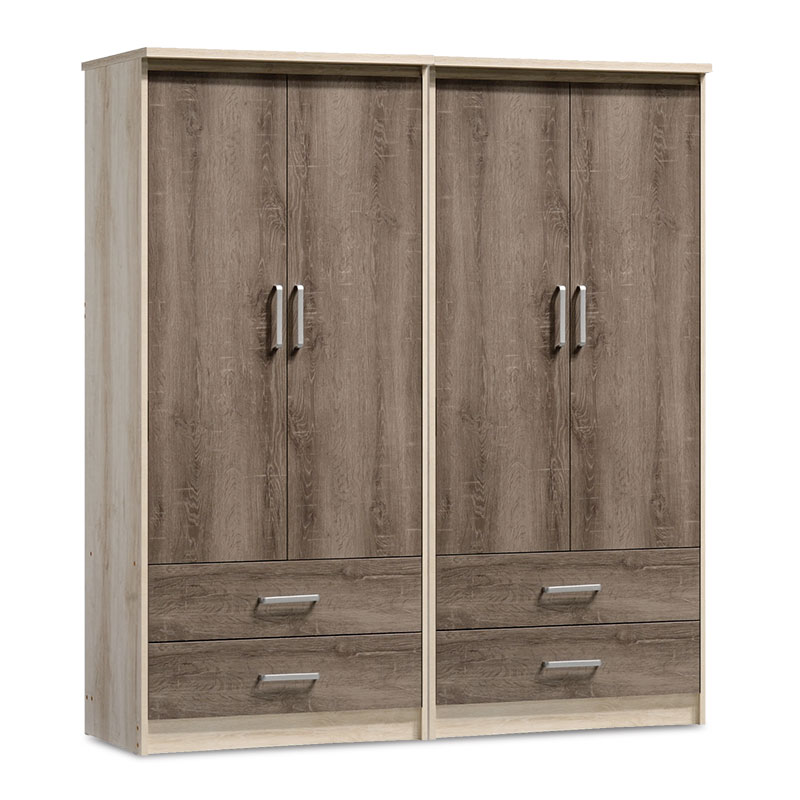 Nτουλάπα ρούχων τετράφυλλη Olympus pakoworld με 4 συρτάρια χρώμα castillo-toro 162x57x183εκ