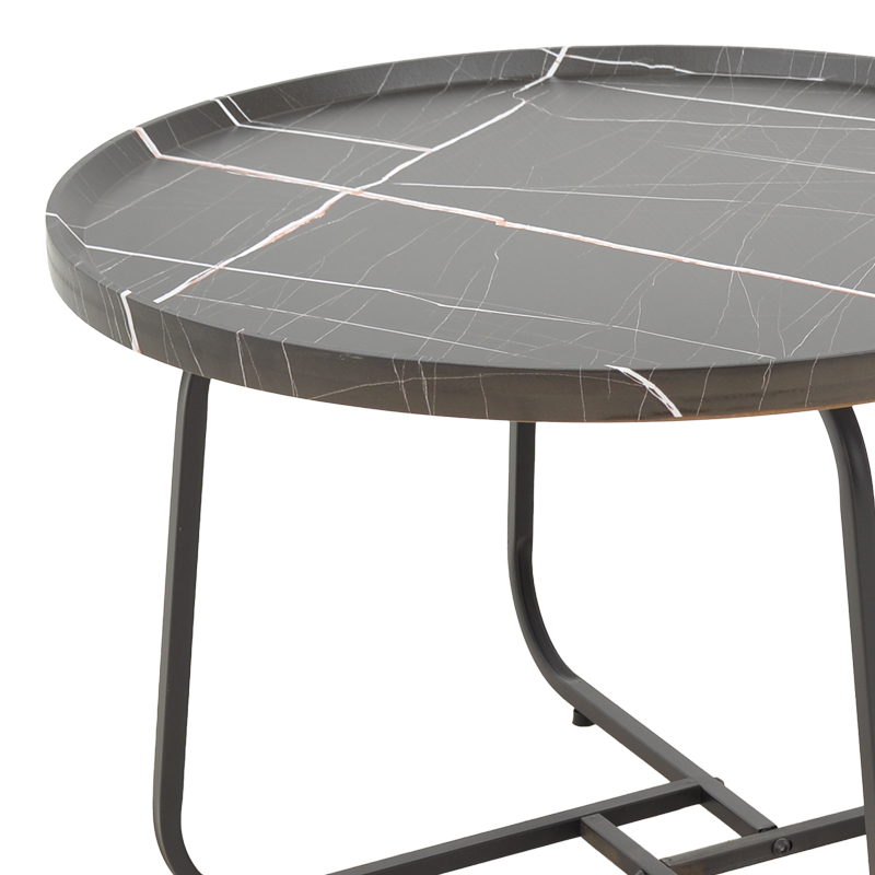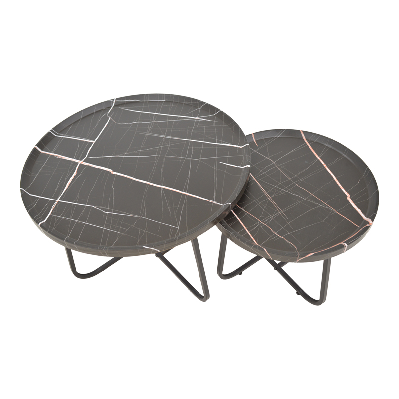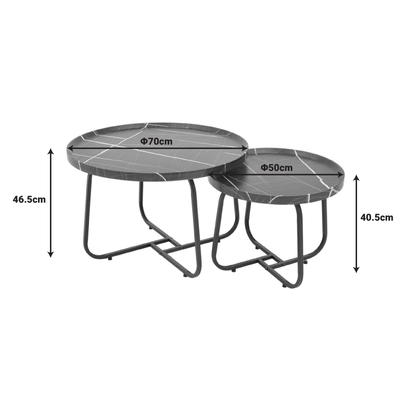 Tραπέζια σαλονιού Crismory pakoworld σετ 2τεμ MDF σε απόχρωση μαύρο μαρμάρου και μαύρα μεταλλικά πόδια Ψάχνεις για ένα σετ τραπέζια σαλονιού που να συνδυάζει το design της εποχής σου με σύγχρονα ποιοτικά ανθεκτικά υλικά; Μη ψάχνεις άλλο. Τα τραπέζια Crismory είναι αυτό ακριβώς που χρειάζεσαι. Μοντέρνα, ανθεκτικα και ευέλικτα. Ιδανικα για την κουζίνα και το σαλόνι του σπιτιού καθώς και για τον επαγγελματικό σου χώρου. Τεχνικά χαρακτηριστικά: Επιφάνεια κατασκευασμένη από mdf εξαιρετικής ποιότητας με μεγάλη αντοχή σε φθορά και χρόνο. Στήριξη σε ενισχυμένο μεταλλικό σκελετό σε μαύρο χρώμα, μεγάλης αντοχής σε χτυπήματα. Προσφέρεται σε χρώμα μαύρο με εφέ μαρμάρου.Διαστάσεις προϊόντων:Διαστάσεις μεγάλου τραπεζιού: Μήκος: 70 εκ. Πλάτος: 70 εκ. Ύψος: 46.5 εκ.Διαστάσεις μικρού τραπεζιού: Μήκος: 50 εκ. Πλάτος: 50 εκ. Ύψος: 40.5 εκ.Πληροφορίες υλικών: MDF: Το MDF (Medium-density fibreboard/ινοσανίδα) είναι παράγωγο ξύλου. Για την παραγωγή του χρησιμοποιούνται ρητίνες (κόλλες) για την συγκόληση των ινών ξύλου οι οποίες συμπιέζονται με ειδικές θερμαινόμενες πρέσες. Είναι πιο πυκνό από την μοριοσανίδα (chipboard) και ανθεκτικό σε αντοχή. Επίσης, δεν απορροφά καθόλου υγρασία. Μέταλλο: Το μέταλλο χρησιμοποιείται ευρέως στην κατασκευή επίπλων, προσφέροντας μια σειρά από πλεονεκτήματα σε σχέση με άλλα υλικά. Είναι εξαιρετικά ανθεκτικό σε φθορές, ιδανικό για έπιπλα που προορίζονται για καθημερινή χρήση σε ένα απαιτητικό περιβάλλον. Διατηρεί το σχήμα και τη δομή του άψογα, εξασφαλίζοντας σταθερότητα και μακροζωία στα έπιπλα. Εκτός από τις ιδιότητες που αναφέρθηκαν παραπάνω, το μέταλλο μπορεί να έχει και άλλα χαρακτηριστικά, όπως η αντιμικροβιακή δράση (χαλκός) ή υπεραγωγιμότητα (μολυβδένιο).Οδηγίες συντήρησης: MDF: Για να το καθαρίσετε χρησιμοποιείστε ένα μαλακό στεγνό πανί ώστε να αφαιρέσετε σκόνη και βρωμιά. Για λεκέδες χρησιμοποιείστε ένα μαλακό πανί με χλιαρό νερό και ήπιο σαπούνι. Σκουπίστε απαλά την επιφάνεια μέχρι να αφαιρεθεί ο λεκές. Στο τέλος σκουπίστε καλά την επιφάνεια με ένα στεγνό πανί. Το MDF είναι ευαίσθητο στην υγρασία, επομένως είναι σημαντικό να το προστατεύετε από την υγρασία. Σκουπίστε τυχόν υγρά άμεσα. Μην χρησιμοποιείτε ισχυρά καθαριστικά ή χημικά, καθώς μπορεί να βλάψουν το MDF. Μέταλλο: Εάν πρόκειται για οποιοδήποτε μέταλλο εσωτερικού χώρου, ένα ξεσκόνισμα ή ένα καθάρισμα με υγρό πανί σε τακτά χρονικά διαστήματα είναι η ενδεδειγμένη επιλογή.Παρατηρήσεις: Το προϊόν παραδίδεται αμοντάριστο, σε εργοστασιακή συσκευασία. Η χρωματική απόχρωση του προϊόντος ενδέχεται να διαφέρει ελαφρώς σε σχέση με την φωτογραφική απεικόνισή του στην οθόνη σας.
