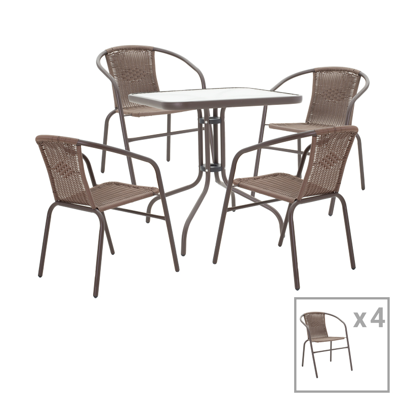 Tραπεζαρία Obbi-Watson pakoworld σετ 5τεμ καφέ μέταλλο-pe rattan 80x80x70εκ