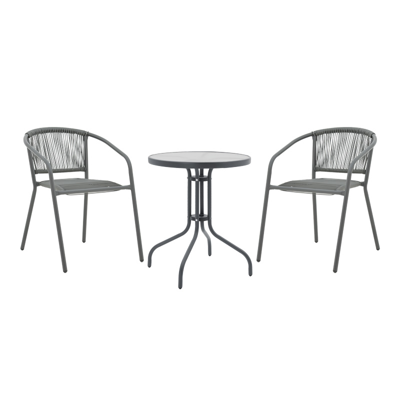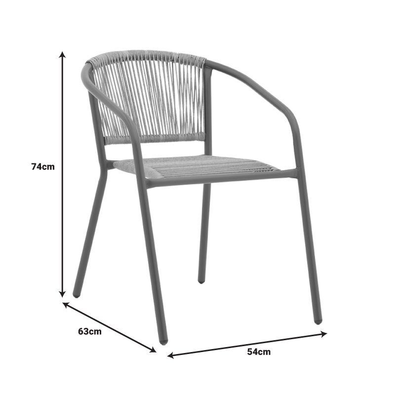 Tραπεζαρία Watson-Lindaria pakoworld σετ 3τεμ μέταλλο ανθρακί-γυαλί Φ60×70εκ Θέλετε μία ανθεκτική τραπεζαρία για το μπαλκόνι ή τον κήπο σας που θα αναβαθμίσει αισθητικά το χώρο σας; Η Watson-Lindaria είναι ιδανική για εσάς καθώς συνδυάζει την αισθητική με την ποιότητα κατασκευής.To set περιλαμβάνει δύο πολυθρόνες και ένα τραπέζιΤεχνικά χαρακτηριστικά τραπεζιού: Σταθερός σκελετός από εξαιρετικής ποιότητας μέταλλο με αντοχή στην καταπόνηση και στη φθορά. Κυρίως επιφάνεια τραπεζιού από tempered γυαλί 5χιλ – διάφανο waterwave. Μεγάλη ανθεκτικότητα: κατάλληλο για χρήση σε εξωτερικό χώρο εκτεθειμένο σε καιρικές συνθήκες κι υγρασία. Προσφέρεται σε χρώμα γκριΔιάσταση προϊόντος: Μήκος: 60 εκ. Πλάτος: 60 εκ. Ύψος: 70 εκΤεχνικά χαρακτηριστικά πολυθρόνας: Σταθερός σκελετός από εξαιρετικής ποιότητας μέταλλο (24×0.8mm) με αντοχή στην καταπόνηση και στη φθορά. Η πλάτη και η έδρα είναι κατασκευασμένες από pe rattan εξαιρετικής ποιότητας. Στοιβάζεται. Προσφέρεται σε ανθρακί χρώμα.Διάσταση πολυθρόνας : Μήκος: 54 εκ. Πλάτος: 63 εκ. Ύψος: 74 εκ.Παρατηρήσεις: Το προϊόν παραδίδεται σε εργοστασιακή συσκευασία και με αναλυτικό οδηγό συναρμολόγησης. Η χρωματική απόχρωση του προϊόντος ενδέχεται να διαφέρει ελαφρώς σε σχέση με την φωτογραφική απεικόνισή του στην οθόνη σας.