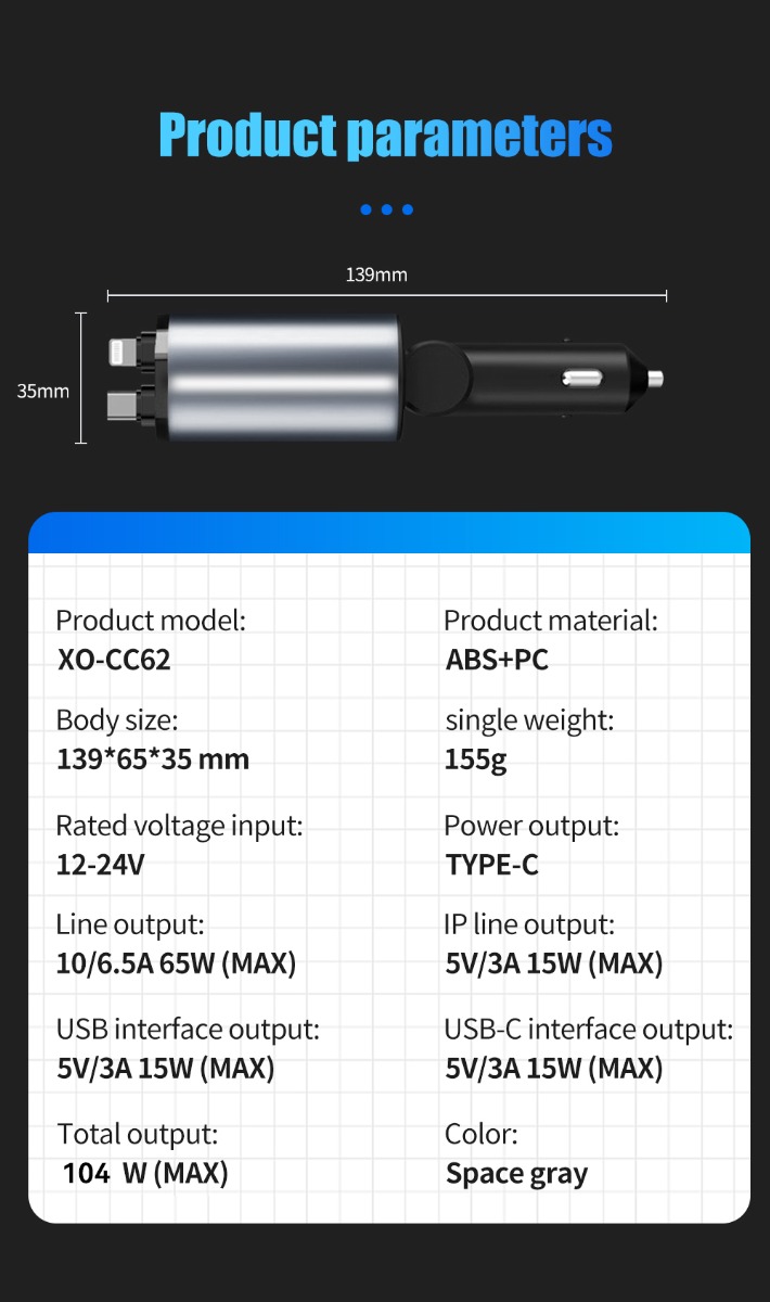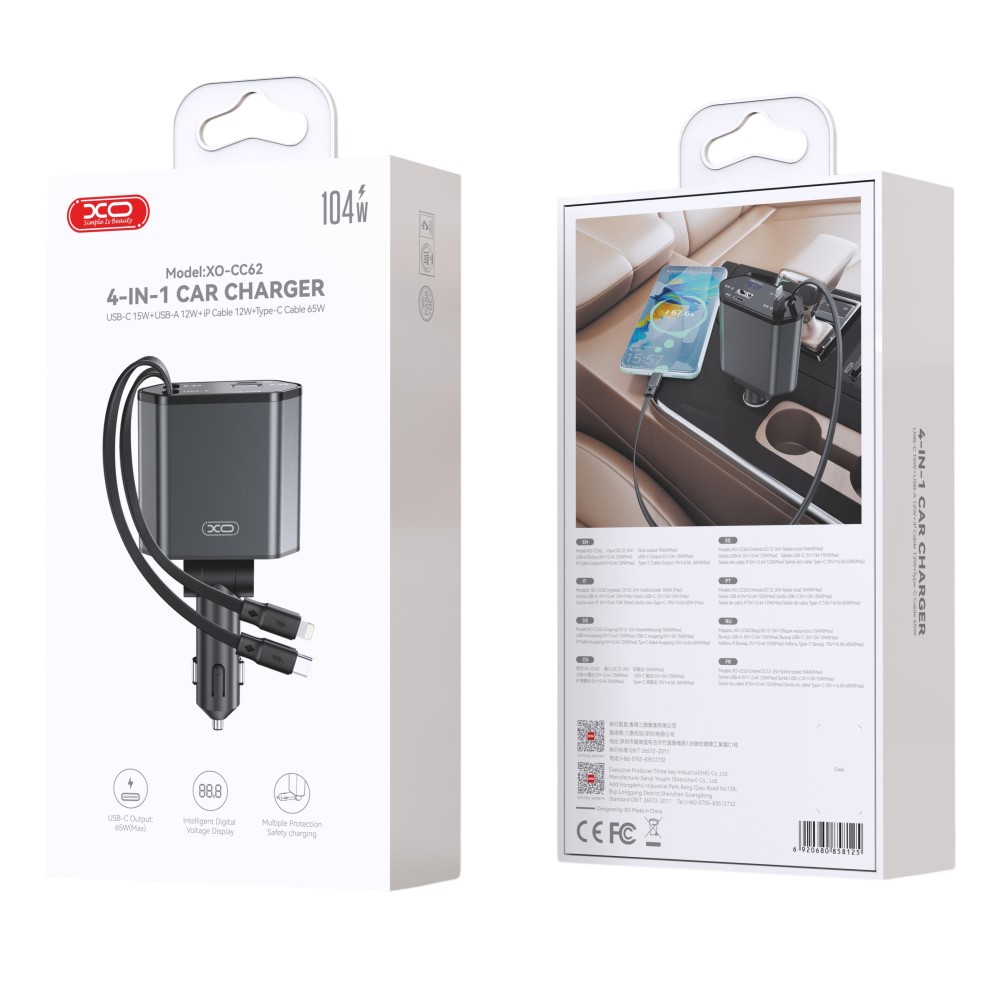 Ονομα : XO CC62 Smart Μεταλλικός 4 σε 1 Retractable Φορτιστής Αυτοκινήτου