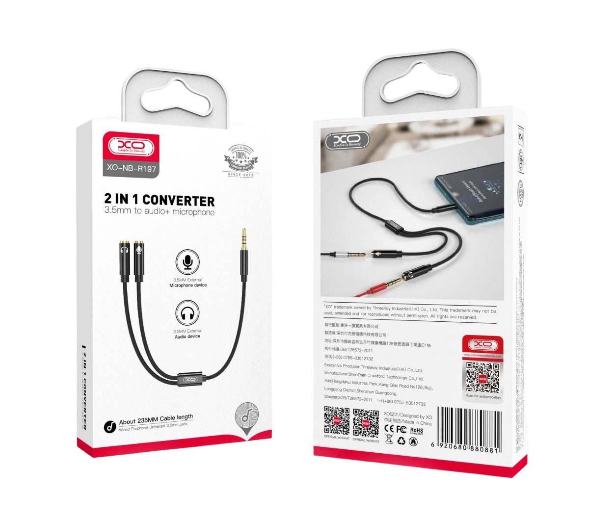 Ονομα : XO NBR197 2 σε 1 Μετατροπέας 3.5mm σε Ήχου με Μικρόφωνο