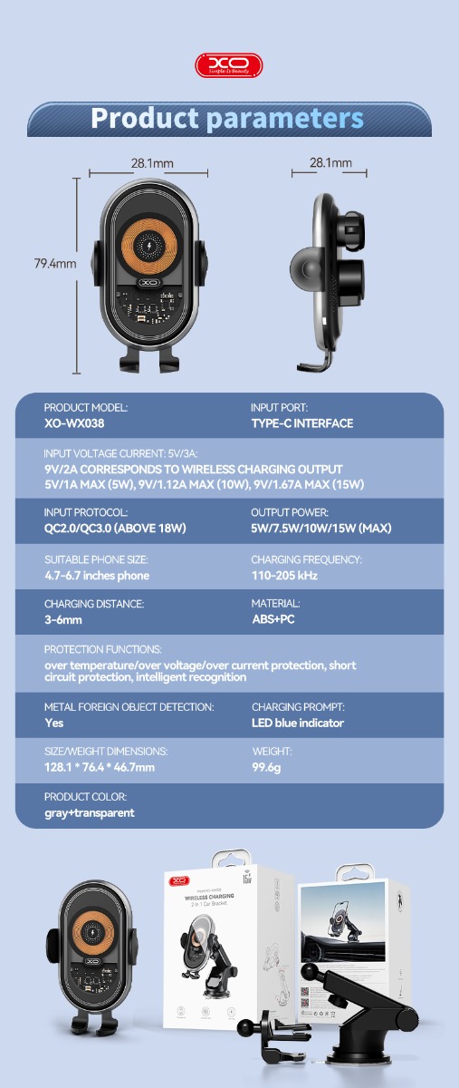 Ονομα : XO WX038 Διαφανής Βάση Ασύρματης Φόρτισης Αυτοκινήτου 2 σε 1 – Αεραγωγού & με Βεντούζα 15W
